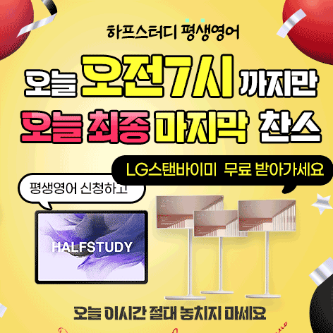 하프스터디, 오는 17일 LG 스탠바이미 고(Go) Cj홈쇼핑 무료 증정 방송 진행.. 2023-07-12