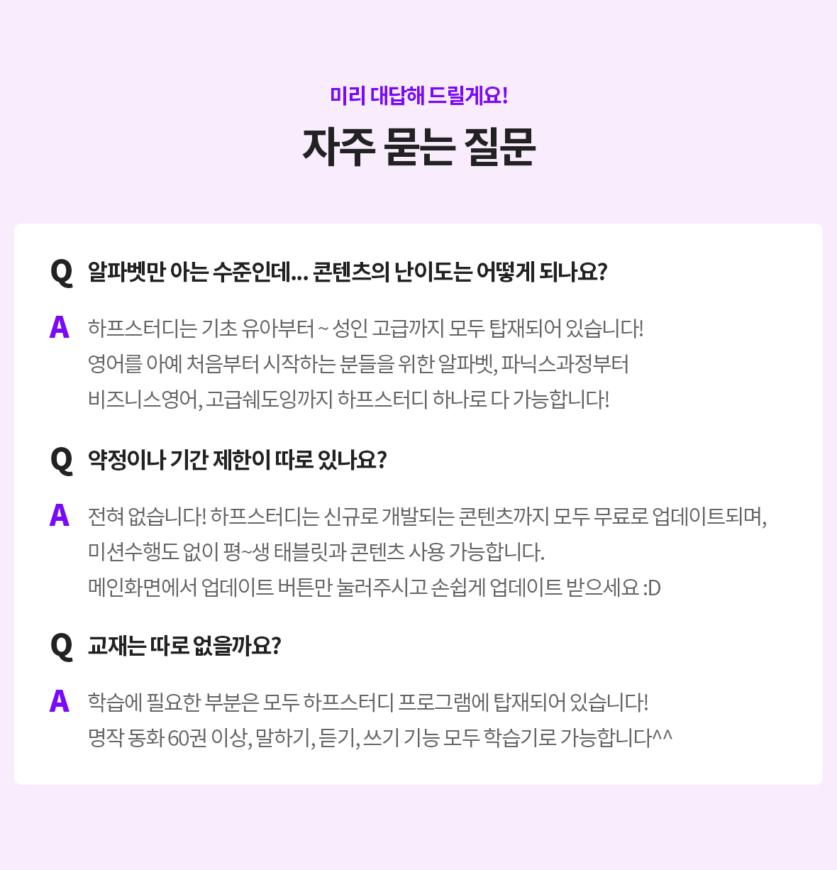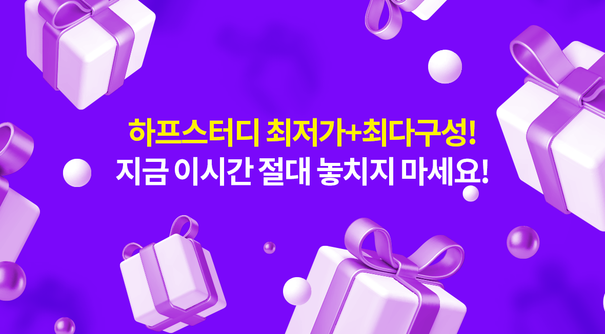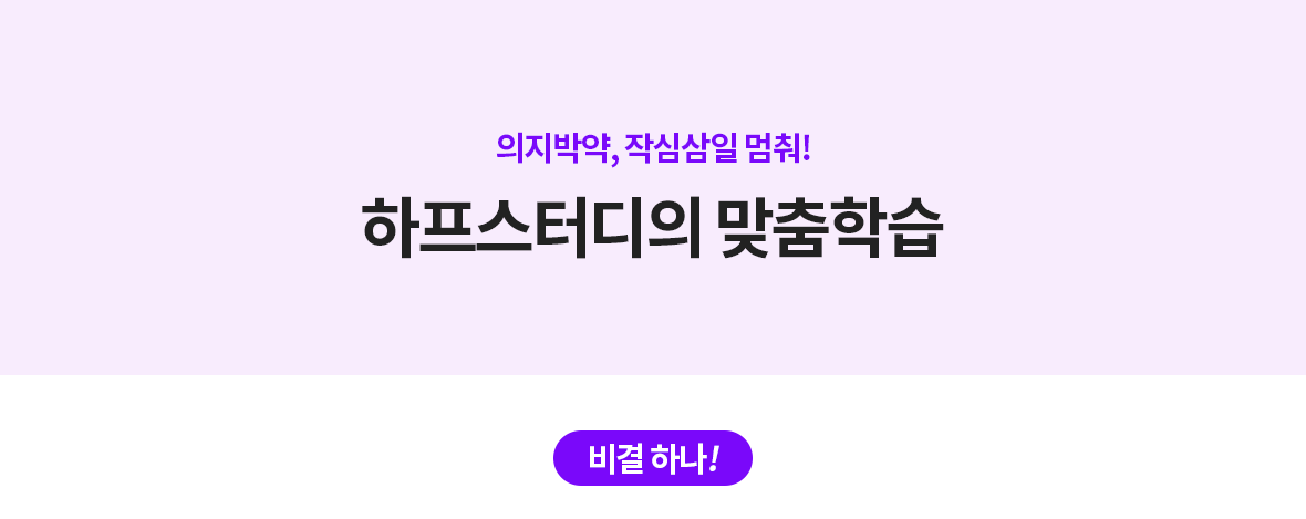 하프스터디 콘텐츠는 추가 비용 없으며, 무상 업데이트 됩니다.