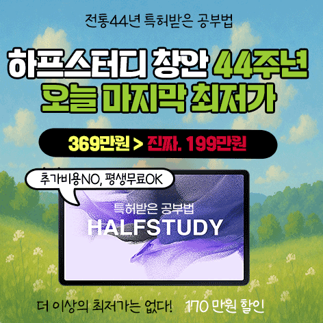 하프스터디 블프특가 11/16~11/19 마지막 행사.. 2024-11-16 -