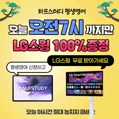 하프스터디, 오는 17일 LG 스탠바이미 고(Go) Cj홈쇼핑 무료 증정 방송 진행.. 2023-07-12