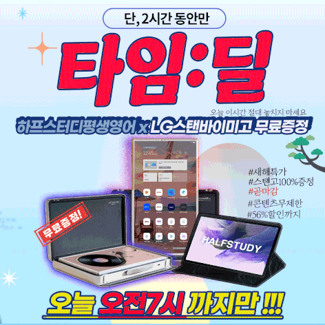 하프스터디, 오는 17일 LG 스탠바이미 고(Go) Cj홈쇼핑 무료 증정 방송 진행.. 2023-07-12